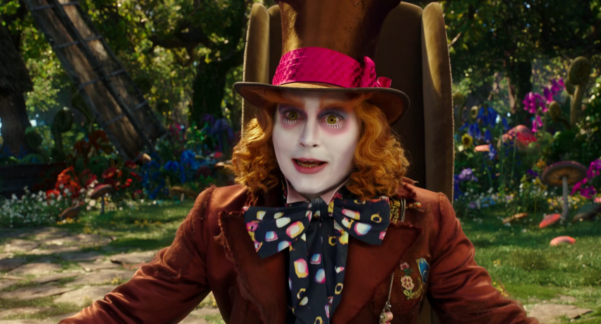 電影好像以「時間」為主軸,但經過稍微思考一下又好像不是那麼一回事,所謂的時空穿梭,對劇情的作用不比多啦A夢的時光機大;親情戲好像也是另一大賣點,瘋帽子一家、紅白皇后的姊妹情都是片中一直提、一直提的要點,但白皇后依然是那個做著奇怪手勢背誦對白的機器、紅皇后依然那吵得要死的偏執狂,她倆的戲份依然劇情卻沒有帶給觀眾一絲的溫馨或苦澀感,老實說沒有上述兩點的親情戲我也不知道到底算什麼...