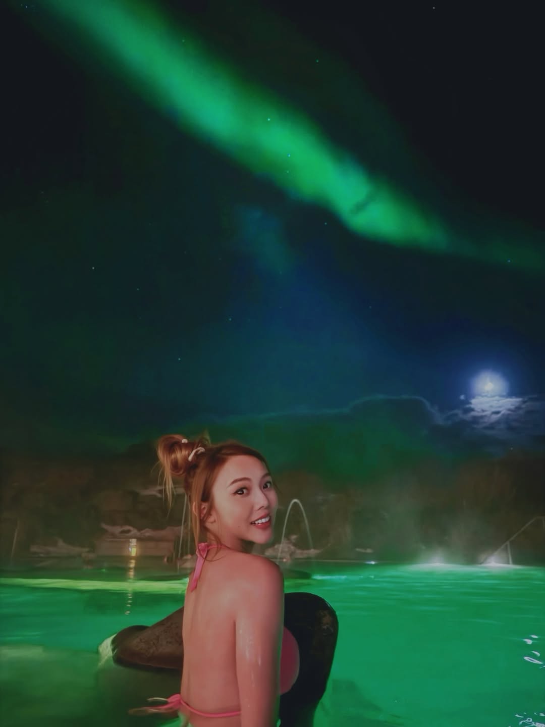 近日,前TVB小花杜穎珊在Instagram分享一組冰島旅行性感泳裝照,瞬間引爆網民熱議。她身穿桃紅色比堅尼,在冰天雪地中的溫泉中浸泡,大方展現健美S曲線,身後夜空恰好綻放壯麗極光,畫面夢幻浪漫。她興奮帖文表示:「本身淨係諗住去relax,點知極光大爆發開心!」這組照片不僅捕捉到極光奇觀,更讓網友驚嘆她的完美身材,留言讚「最強Body」「尺度大開」。