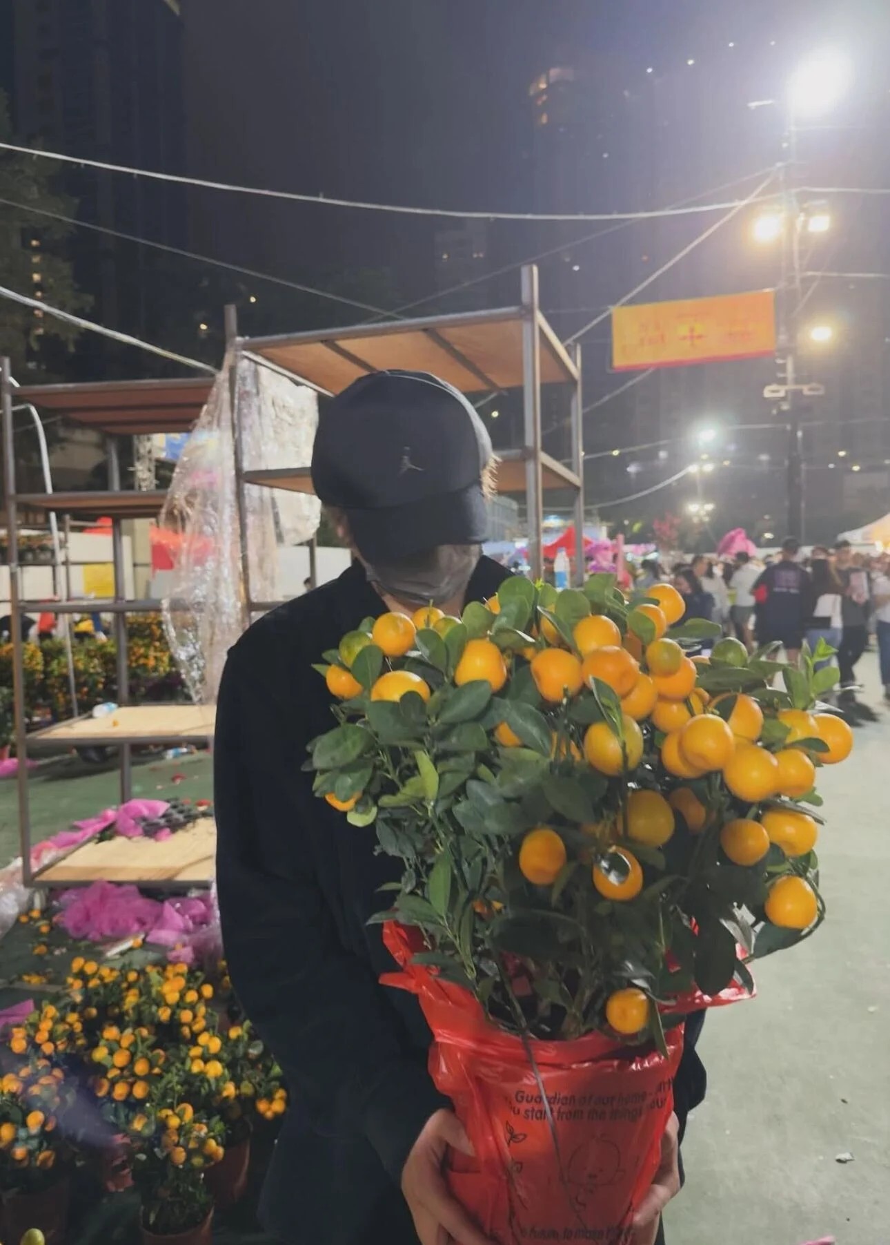 據悉,姜濤當晚為了保持低調,全副武裝,戴上帽子、口罩,並穿上長褸,密實地穿梭在熙來攘往的人群中。儘管打扮得非常「包到冚」,他依然興致勃勃地在各個攤檔間穿梭,最後更買了一盆寓意大吉大利的年桔應節,並開心地與「戰利品」合照,展現出童心未泯的一面。