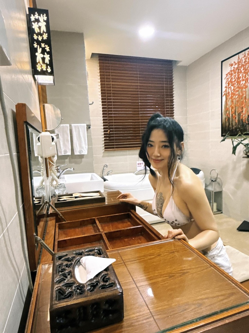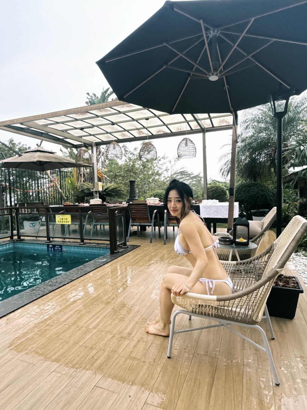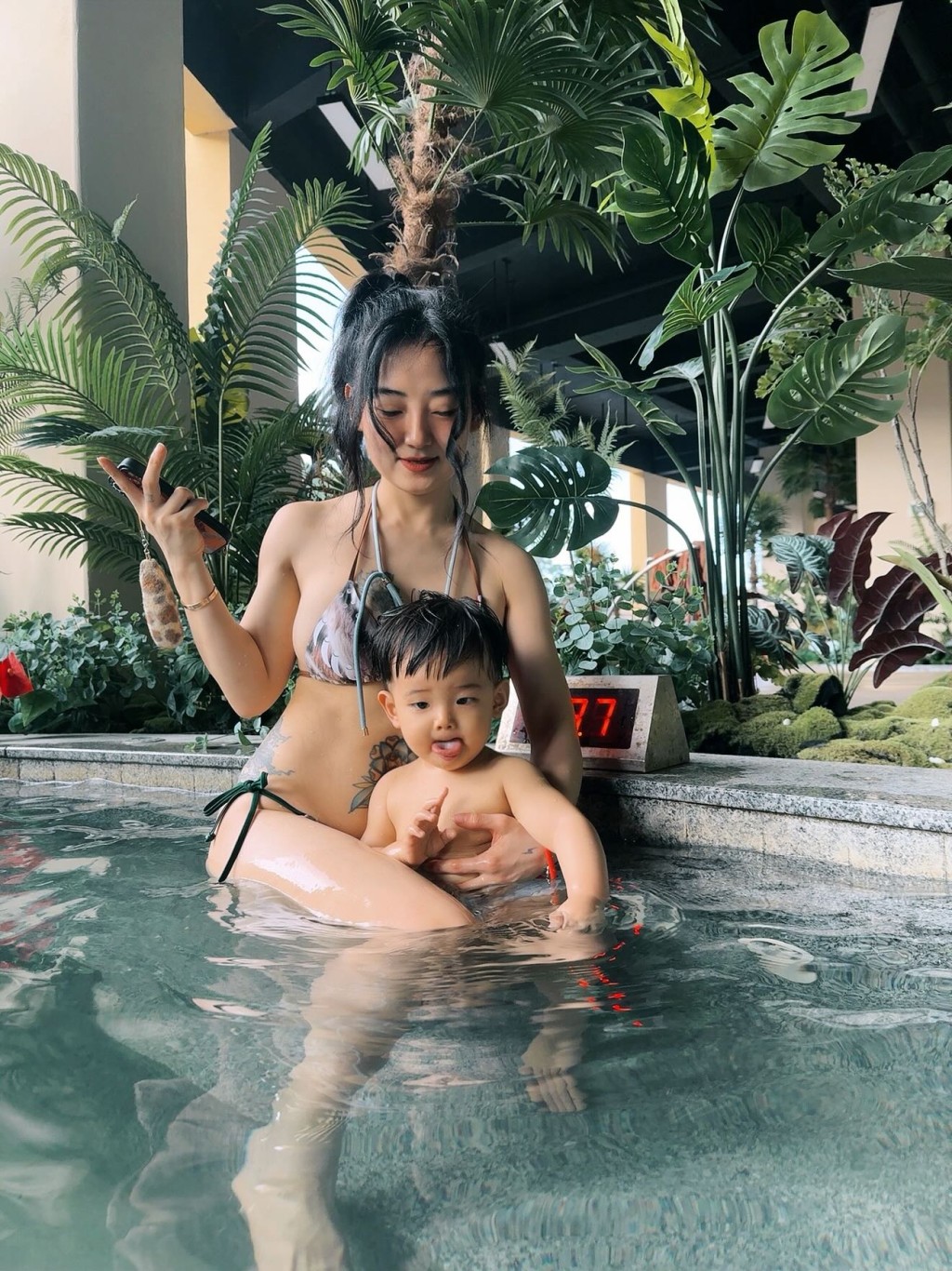 從娜娜分享的照片可見,她入住的Villa設施齊全,擁有私人泳池,她穿著白色波點比堅尼在泳池邊享受日光浴,姿態誘人。雖然娜娜的性感照成為焦點,但照片中未見其老公的身影,亦引起網民揣測。不過,娜娜的近況顯示她生活富裕,享受著與兒子一同的親子時光。