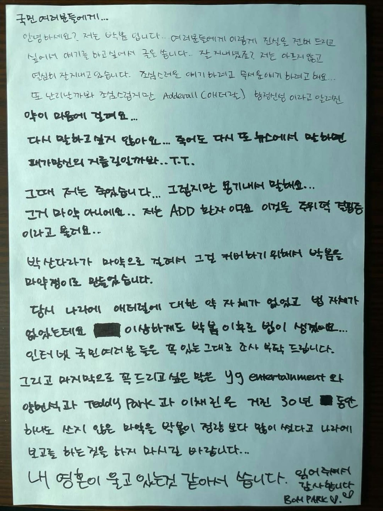 朴春在信中強調,她服用的Adderall是美國醫生開立的ADHD治療處方藥,並非毒品,更質疑韓國相關法規是在事件曝光後才匆忙修訂,將Adderall列為毒品。