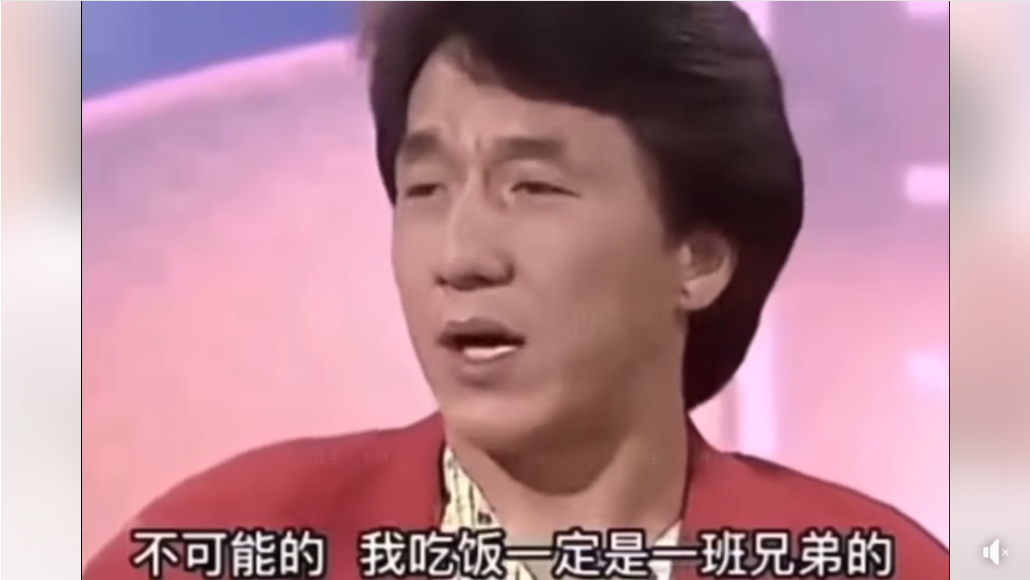 影片中,年輕的成龍意氣風發,身穿黃色恤衫配橙紅色西裝褸,盡顯巨星風采。他坦言:「好坦白講,我生活上以朋友兄弟為主,女朋友好坦白有咩講? 冇嘢講㗎。」 他更以昔日戀人鄧麗君為例:「話又講番去以前,譬如好似鄧麗君咁,就係佢成日想我哋要二人世界,話可唔可以淨係我哋兩個人食飯,冇可能架,我食飯一定係成班兄弟,兄弟幫到我,佢幫到我咩啫? 佢幫唔到我嘢㗎。 兄弟幫到我事業蒸蒸日上,女朋友幫唔到我㗎」。