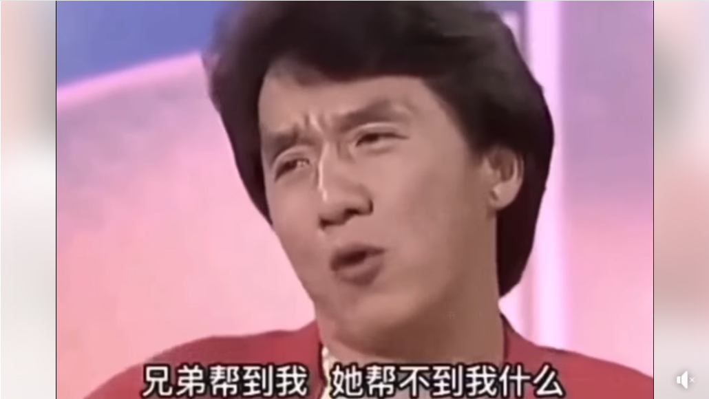 成龍還在影片中表示,自己在圈中見盡很多女人將老公的錢拿走,所以自己會好好守住財富,「好多好多,好多女人將老公啲錢攞晒走,我見到嘅,圈中好多係咁,我會好小心我自己啲錢。 時下年青人太過注重物質,尤其女仔,全部去走捷徑,用最短捷徑走搵最多嘅錢。」 他更強調:「任何一個女仔都好,我都講,我以電影為主,冇嘢緊要得過我事業。 如果有任何人妨礙我嘅事業,拜拜㗎喇,真係拜拜㗎喇」。