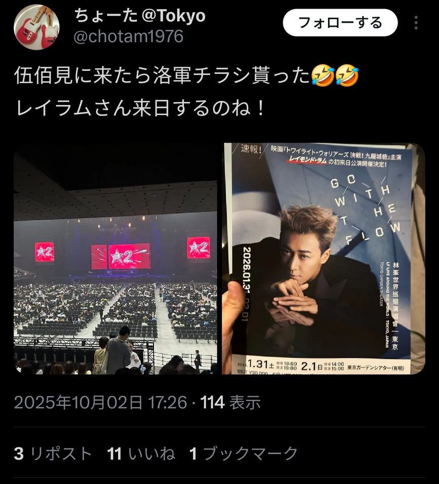 有網民轉貼日本粉絲在社交平台的帖文,以「超突發!林峯將於明年1月31日同2月1日於東京開首個個人日本演唱會!」為題,可見當地粉絲對此消息感到相當驚喜 。