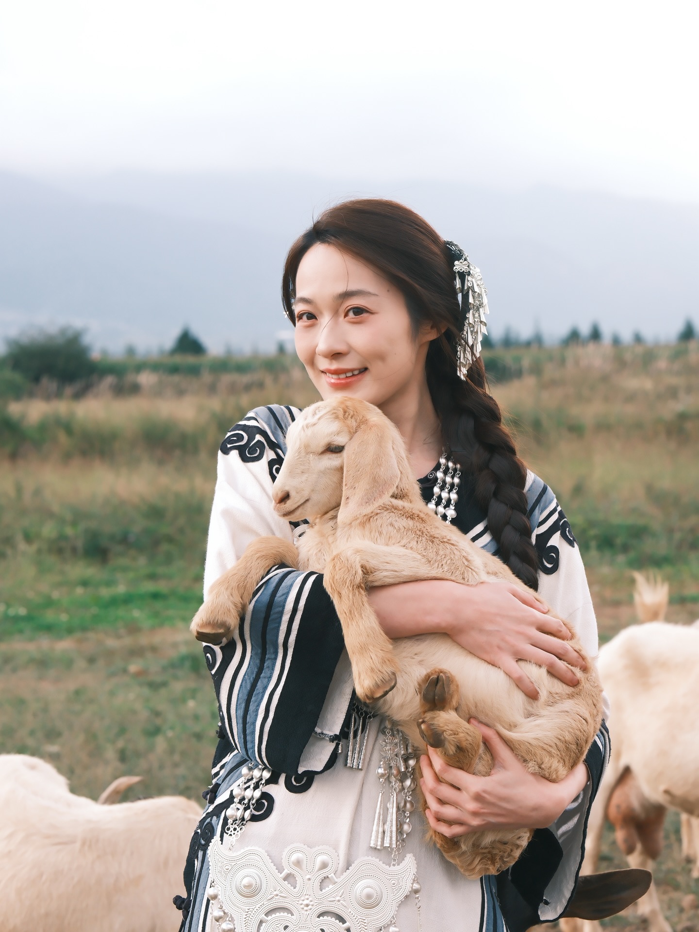 這輯生日寫真最吸睛之處,莫過於蔡潔與小動物的溫馨互動。她溫柔地懷抱小羊,露出淺淺的甜美笑容,神情溫婉動人。她與羊仔互動的畫面充滿靈氣,仙氣滿溢,瞬間融化一眾粉絲的心,紛紛留言大讚「仙女下凡」。