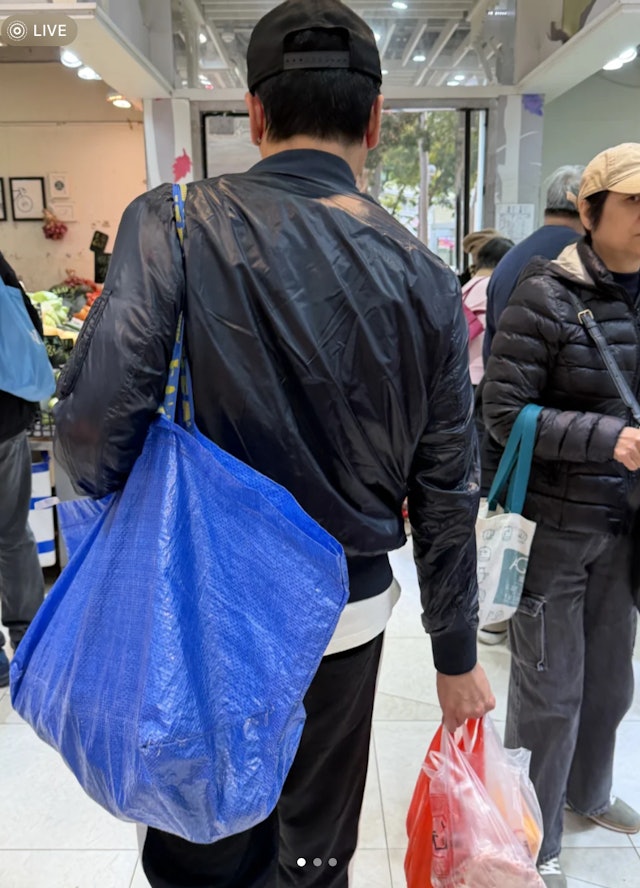 從流出的照片所見,Bosco戴上Cap帽和口罩,打扮低調。他左肩孭著一個大環保袋,右手則「一抽二掕」幾袋餸菜,全程自己輕鬆搞定,被大讚充滿「住家男」本色。據目擊網民稱,他主要在凍肉鋪挑選食材,買完後便將「戰利品」放上自己的座駕,即使發現被粉絲拍照,也只是淡然望了一眼,表現親民。