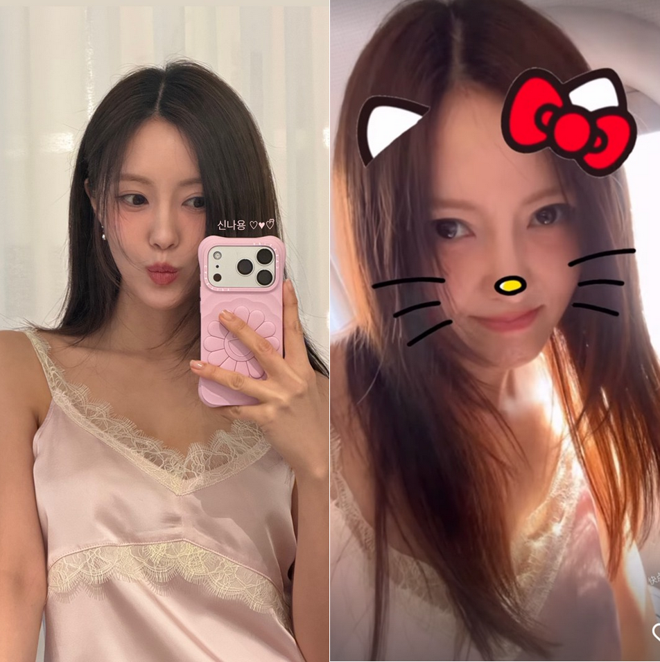 照片中,Hyomin 穿著一襲粉紅色蕾絲滾邊的吊帶裙,造型大膽卻不失時尚感,整體呈現出內衣外穿的「lingerie look」。她自信的神情與服裝搭配隨即引來粉絲熱議。