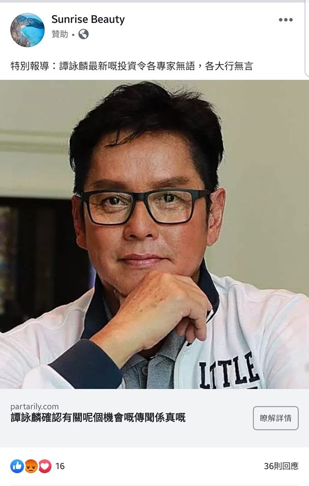 近日,Facebook突然一堆廣告,所有廣告均配上譚詠麟的相片,並指他有一個可以令很多人受益的投資建議給大家,點擊廣告後,大家就會看到一個有關比特幣(Bitcoin)的投資交易系統,另外當中內容亦指譚詠麟曾接受ViuTV的訪問,並分享投資心得。