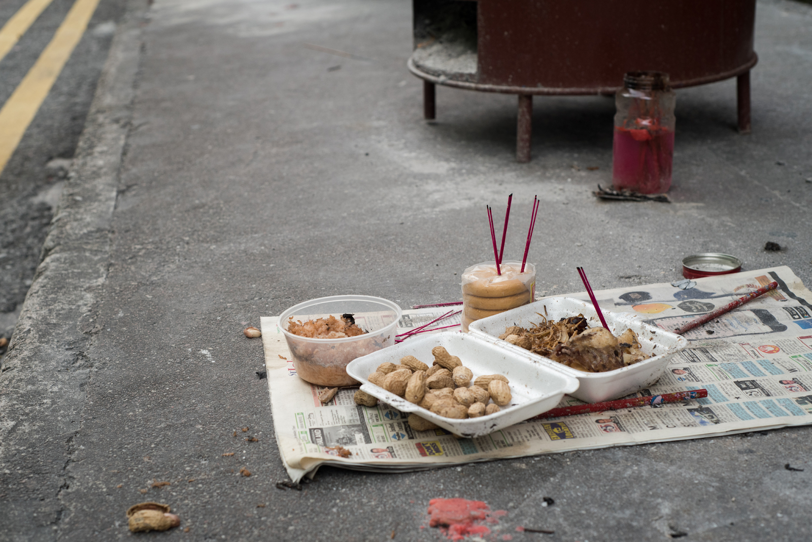 路邊的供品通常是為餓鬼準備,如觸摸或踩到食物請盡快道歉,