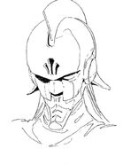 「鐵面具」在戲中一直頗具神秘感,既是女主角貝拉羅拿親父,又是死亡先鋒的大將,最後駕駛「死亡之花」拉夫尼西亞時,甚至赤身踏出太空,揭示他是「生化改造人」的身份。上篇文章提過,在原案時,為延續《F91》系列的「UC新十年」,「鐵面具」曾設定是不止一人,而是為數眾多的集團,為後來故事揭序幕。